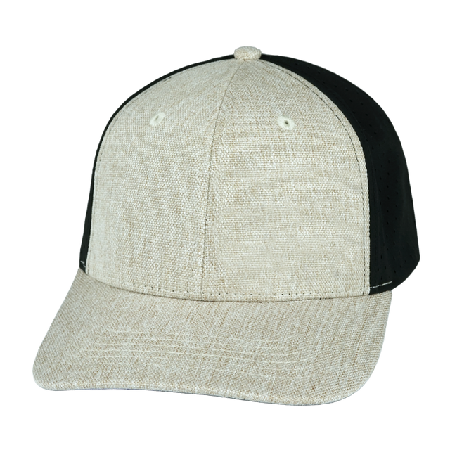 6 Panel - Cream Hemp / Black - Laser Mesh (Unisex) (Case Of 5 Hats) $11-$8ea